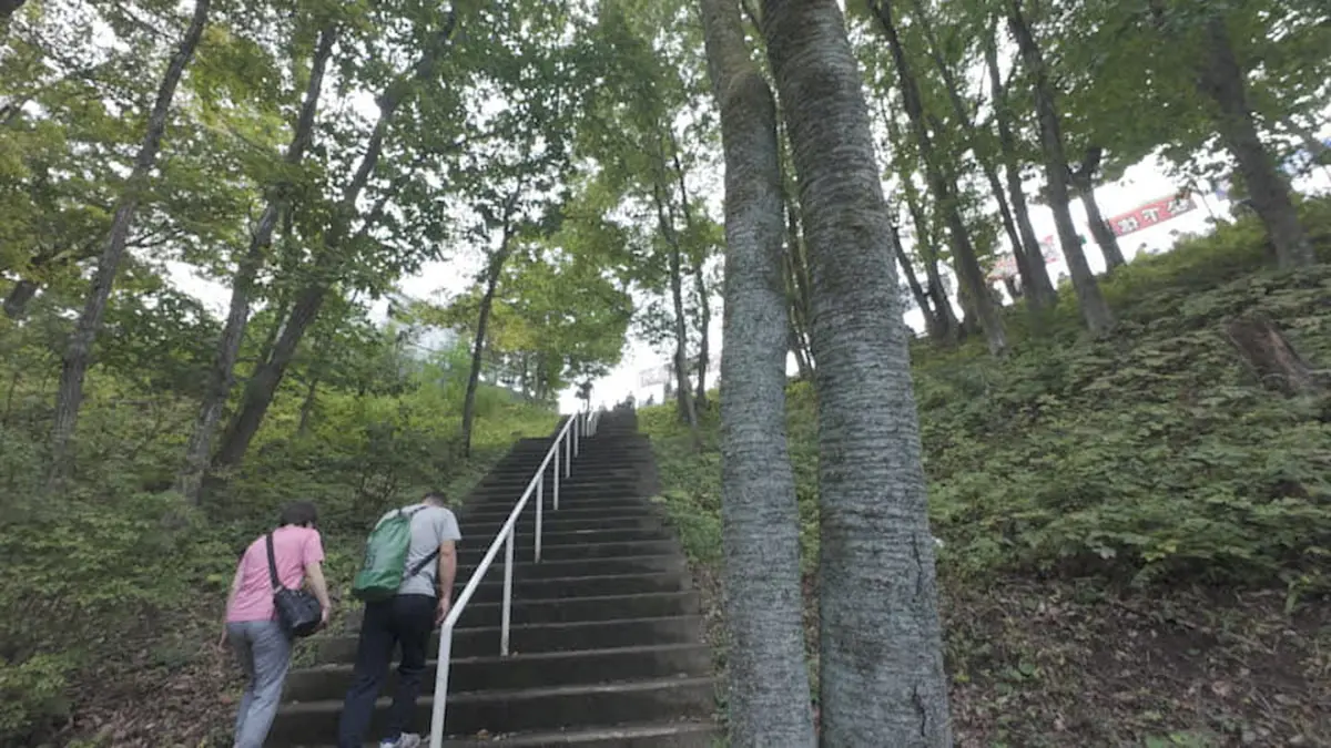 モーターレース観に来たのに最早登山じゃねぇか!というツッコミは置いといて、いよいよグランドスタンドが近づいてきた。