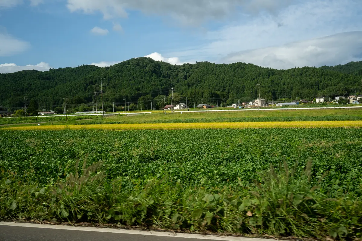 車内から見える景色にも秋が感じられた。道路沿いに見える田んぼの稲は黄色味が。