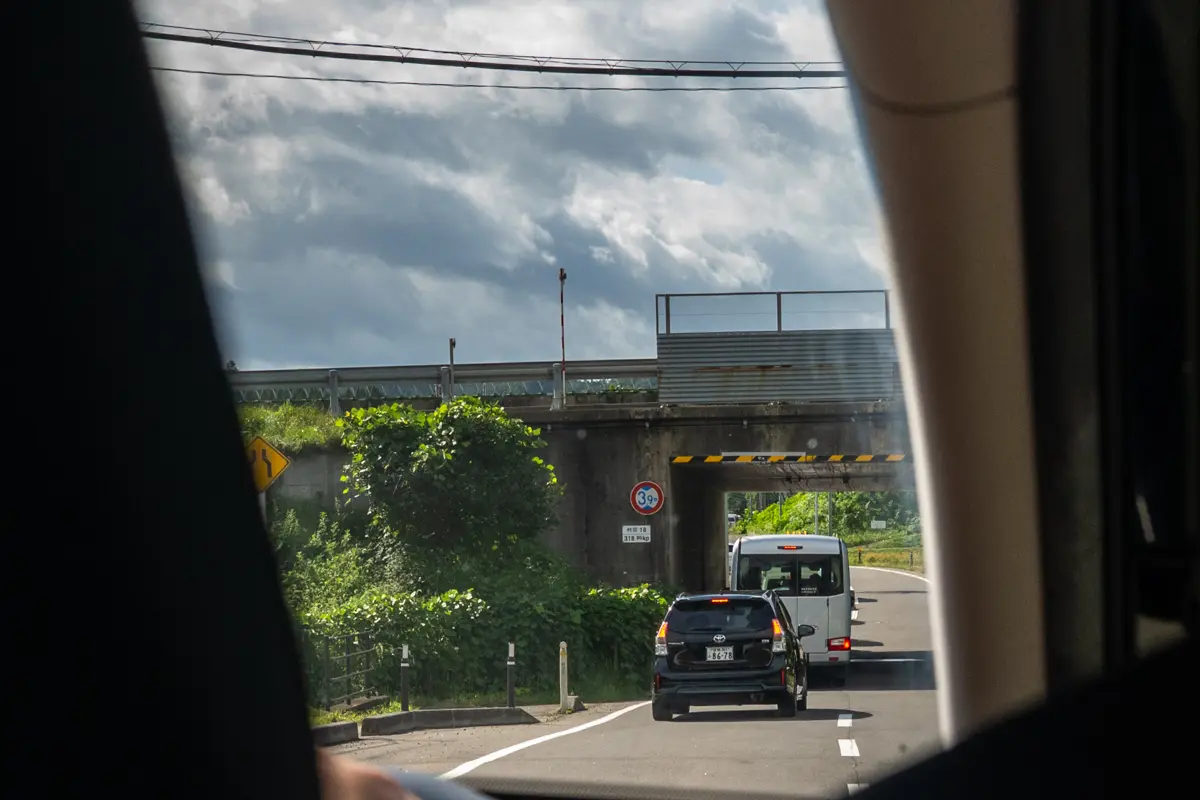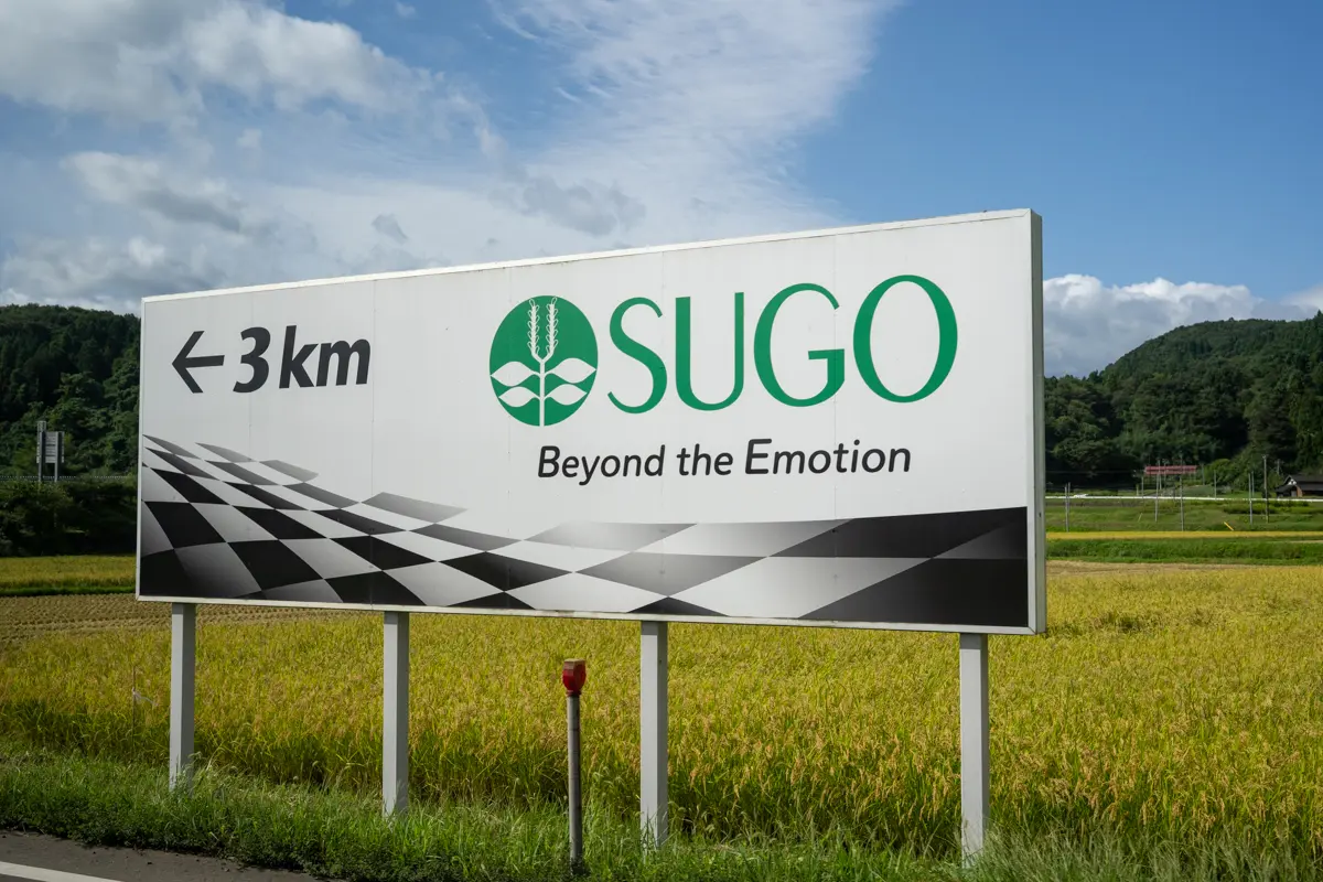 そして途中で「SUGO」と大きく書かれた看板が登場。おっ!いよいよか!と心が踊る。ここまで順調だった。ドライブとしても楽しいものだった。ただ、とある交差点で車が左折すると様相が一変した。