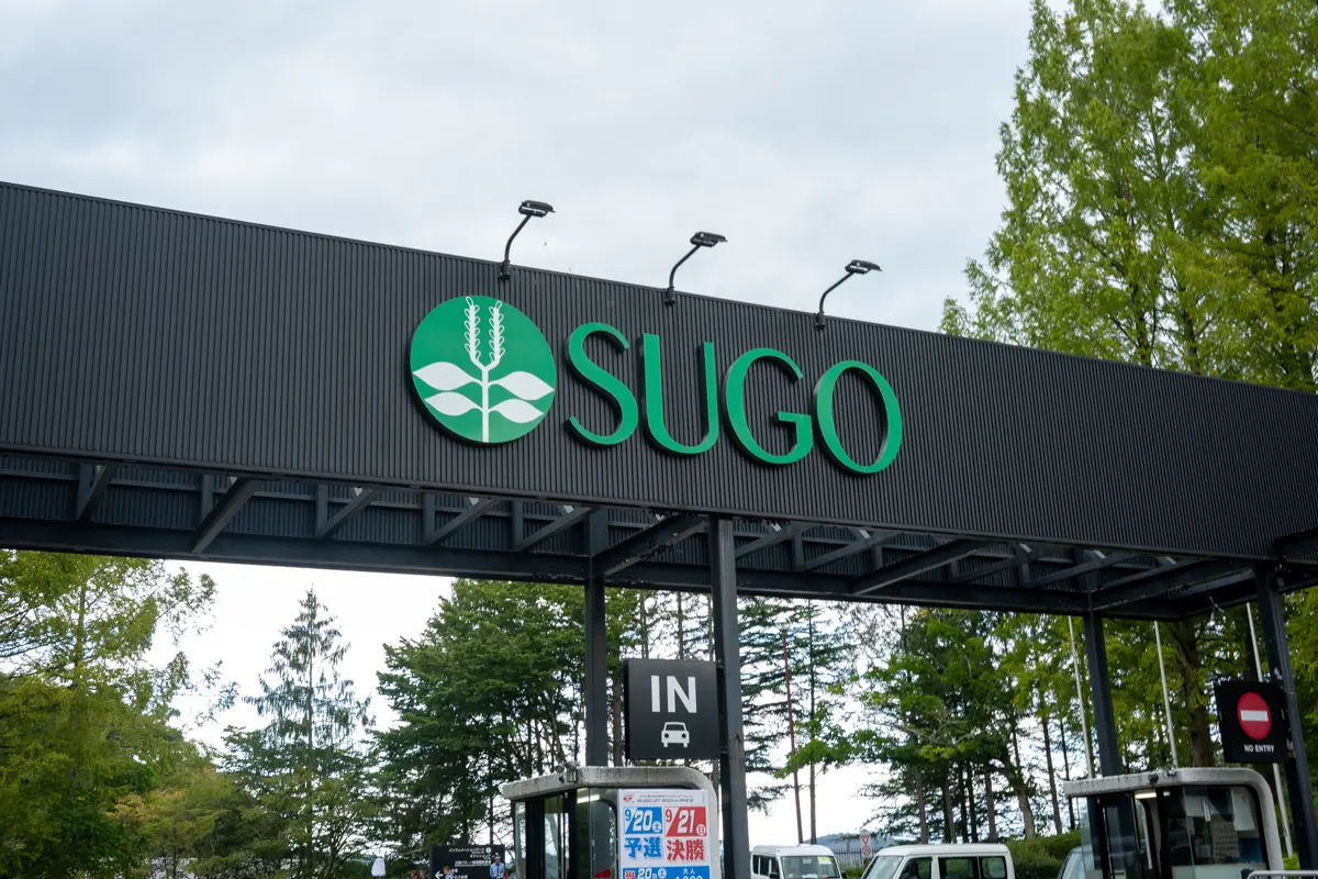 駐車することが出来てホッとしながら、いよいよサーキット内へ。緑色のSUGOの文字が出迎えてくれた。