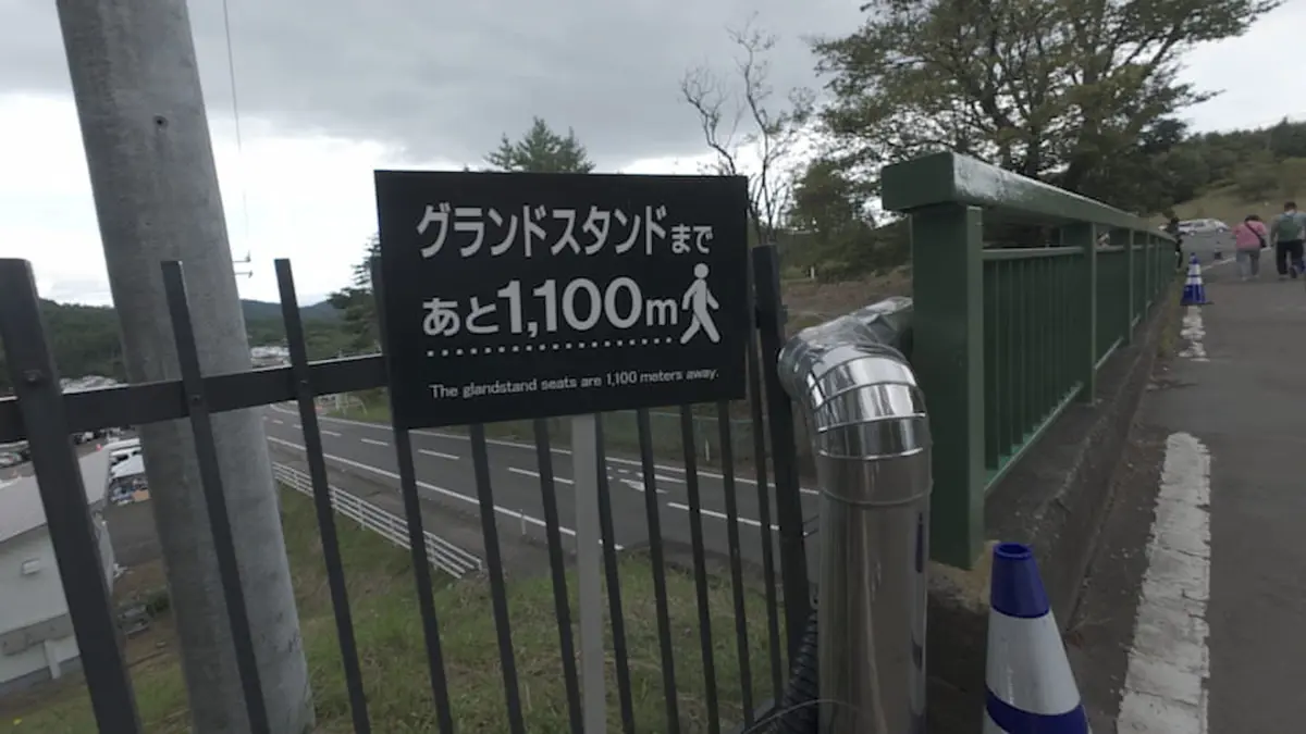 ピットやホームストレートを眺められるグランドスタンドまで600mという看板もありけり。シンプルに歩かせる看板のが怖いぜ。