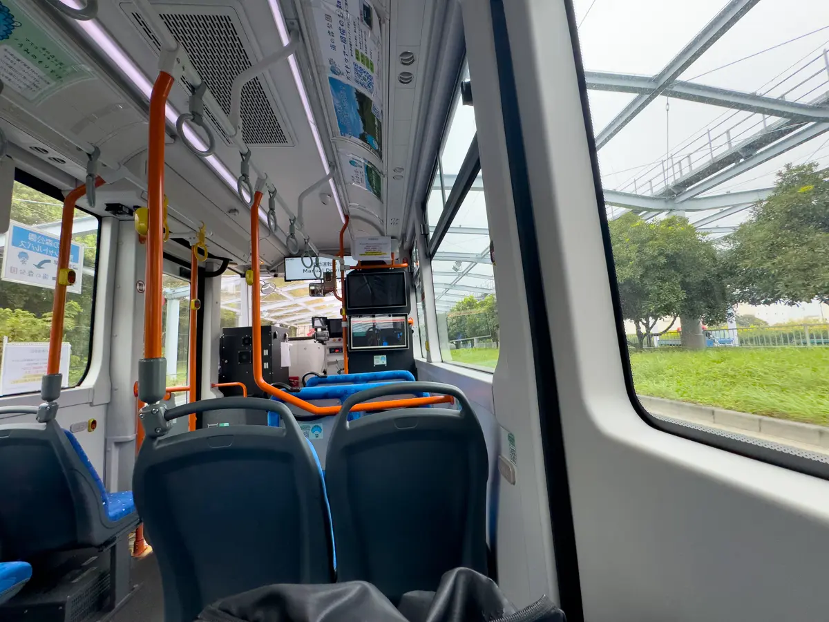 バスに乗り込む。今回のバスは「自動運転」というトピックがある。一体、どのような構造になっているのだろう!とワクワクしながら乗り込む。