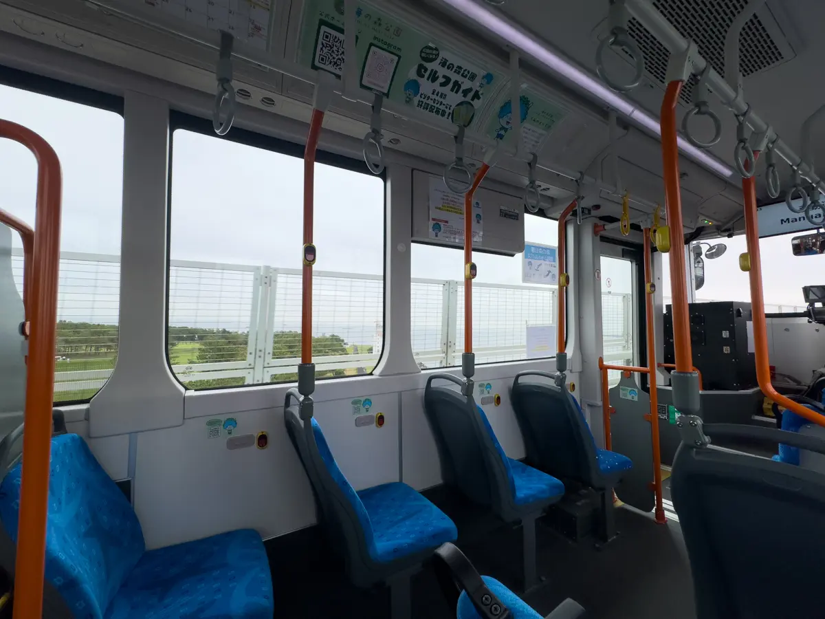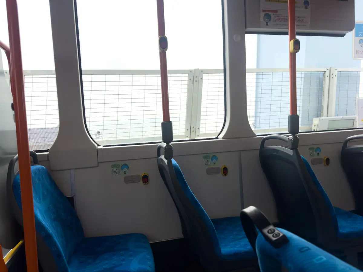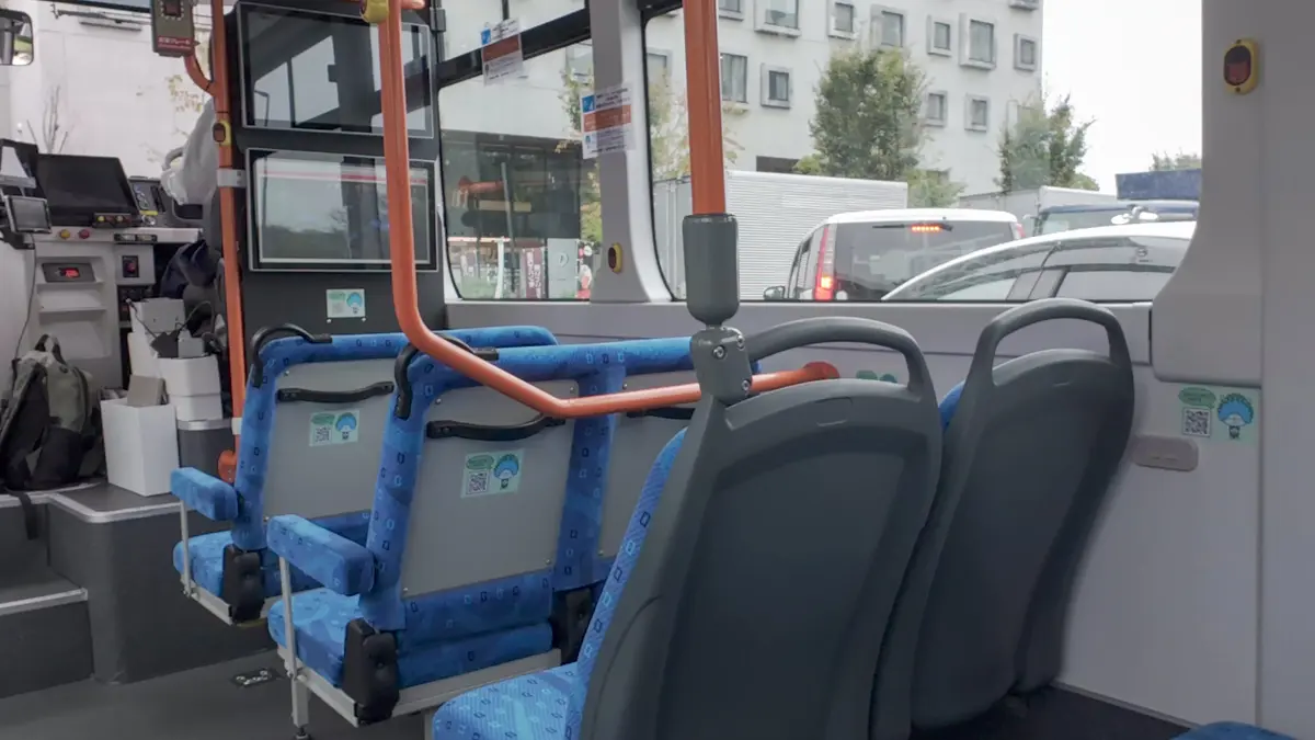 続いて座席周辺。座席は路線バスでよく見るタイプと変わりはない。