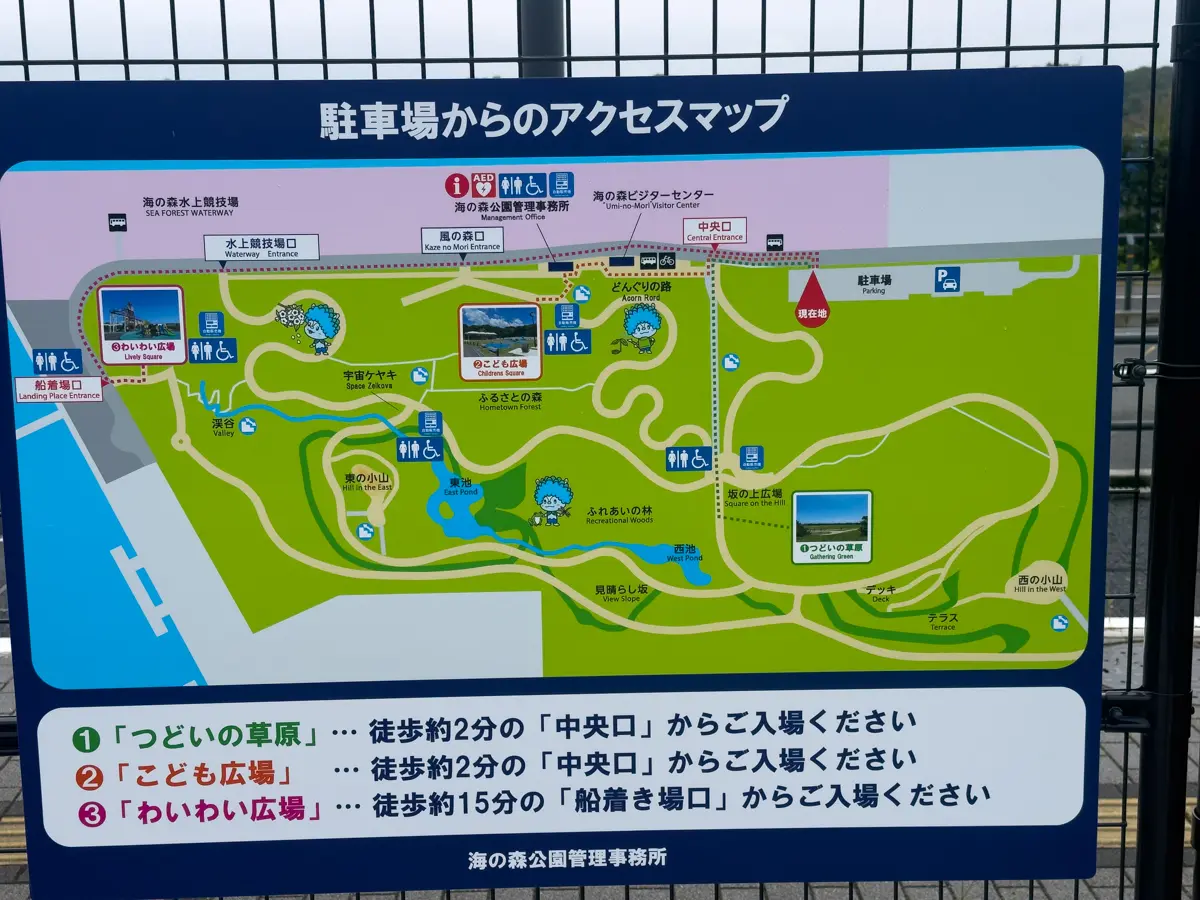 海の森公園は東京駅から直線距離にすれば8.9km先にあり、フジテレビや等身大のガンダムがあるお台場からは約3kmほどの距離にある公園だ。