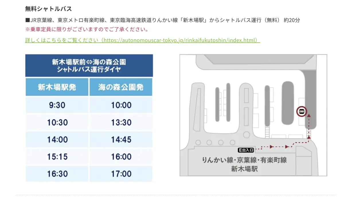なぜ新木場なのか。ここ新木場から海の森公園までバスが発着しているのだ。しかも、無料である。