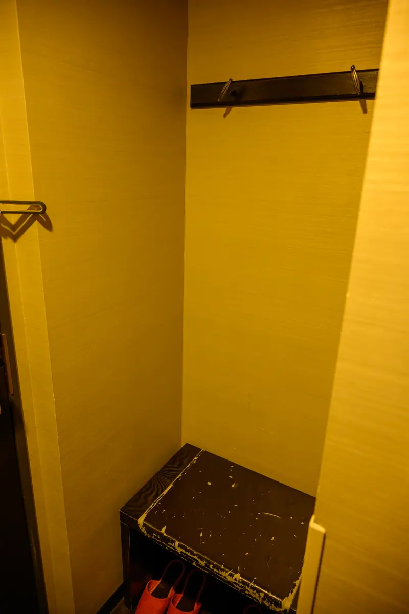 扉横にはスリッパや荷物置きスペース・・・?と個人的には思うが、そういったスペースもある。