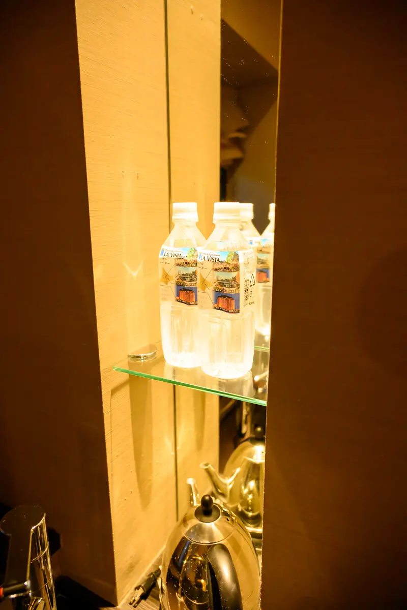 電気ケトルや無料のミネラルウォーターもここに用意されている。ただ、なぜ部屋の中に2つの洗面台があるのかは・・・・わからない。