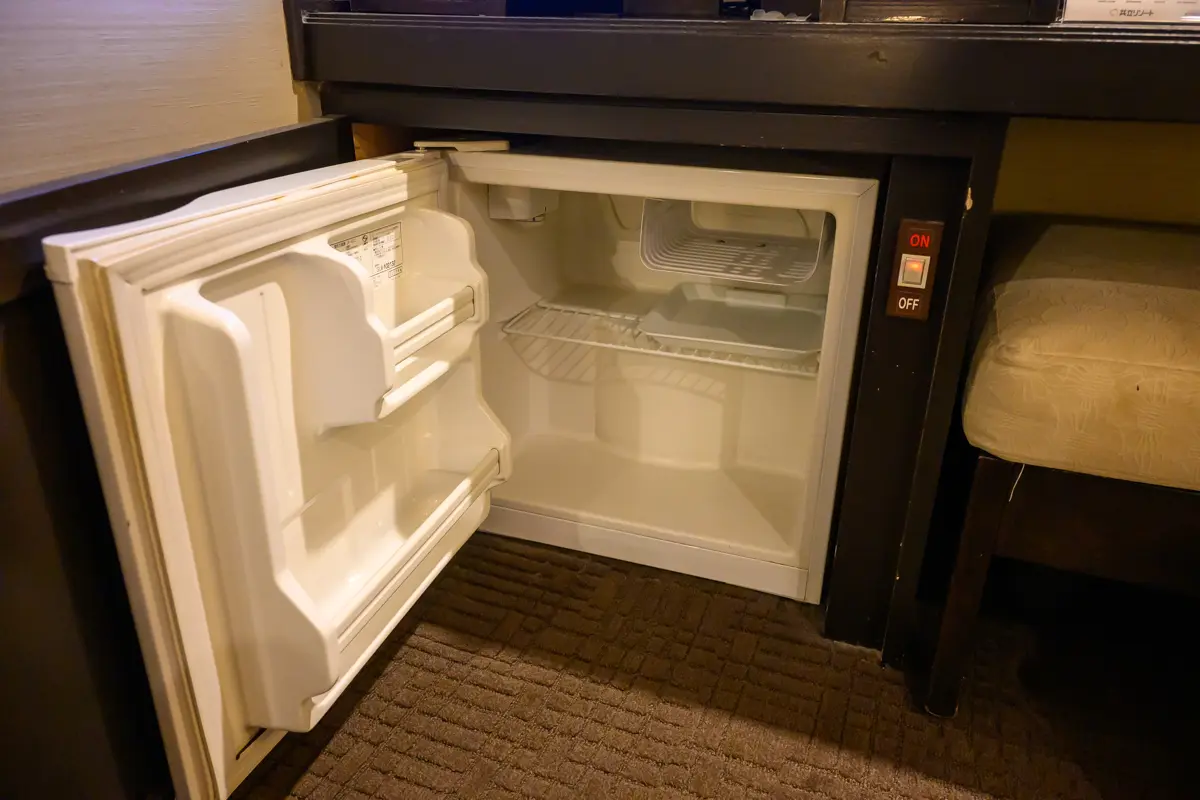 テレビの下にはホテルでは定番の小型冷蔵庫がある。