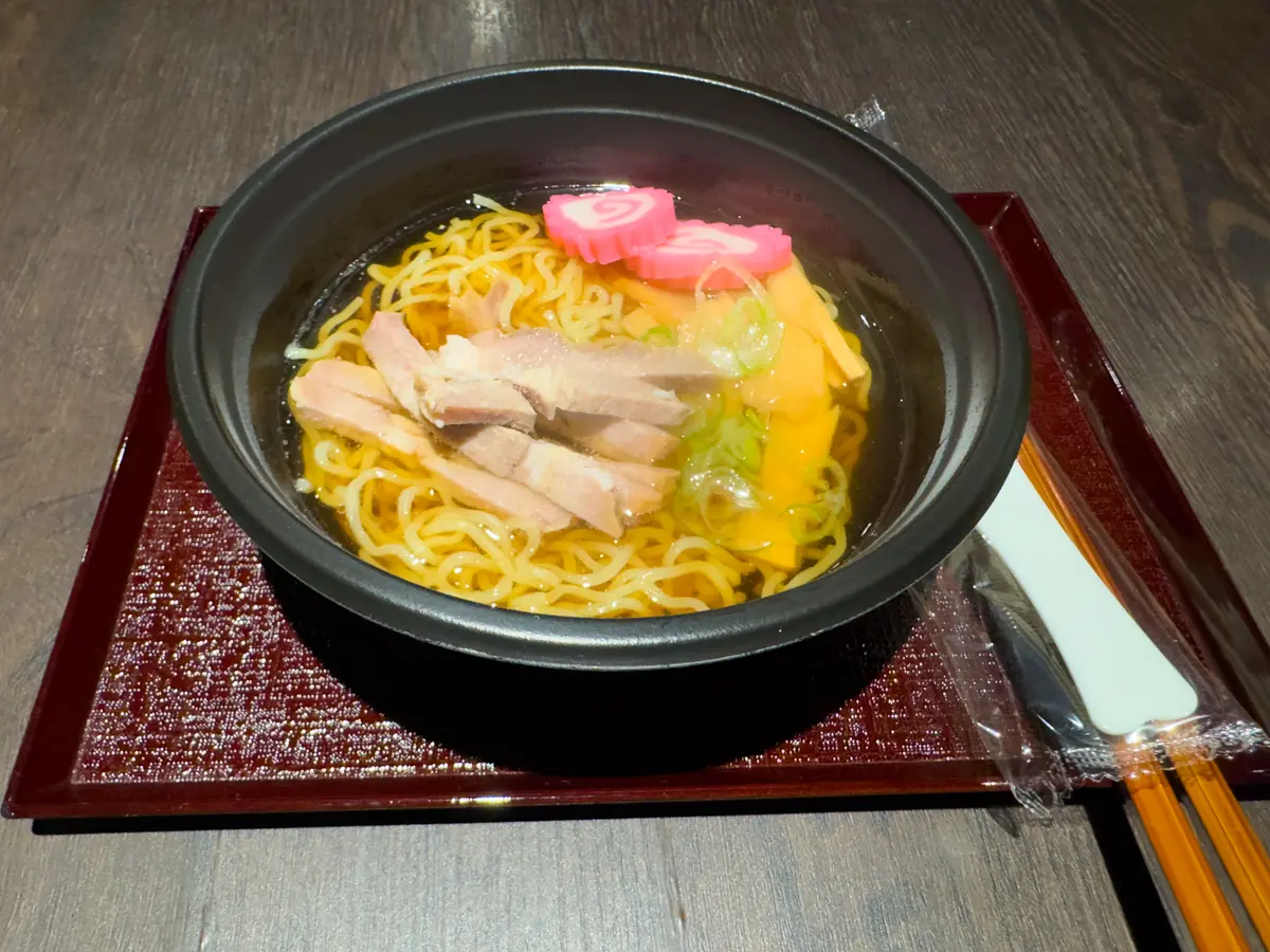 ドーミーイン系列のホテルでは夜の特定時間には無料のラーメン「夜鳴きそば」が提供されることがあり、ここラビスタ函館ベイでも無料提供されていた。
