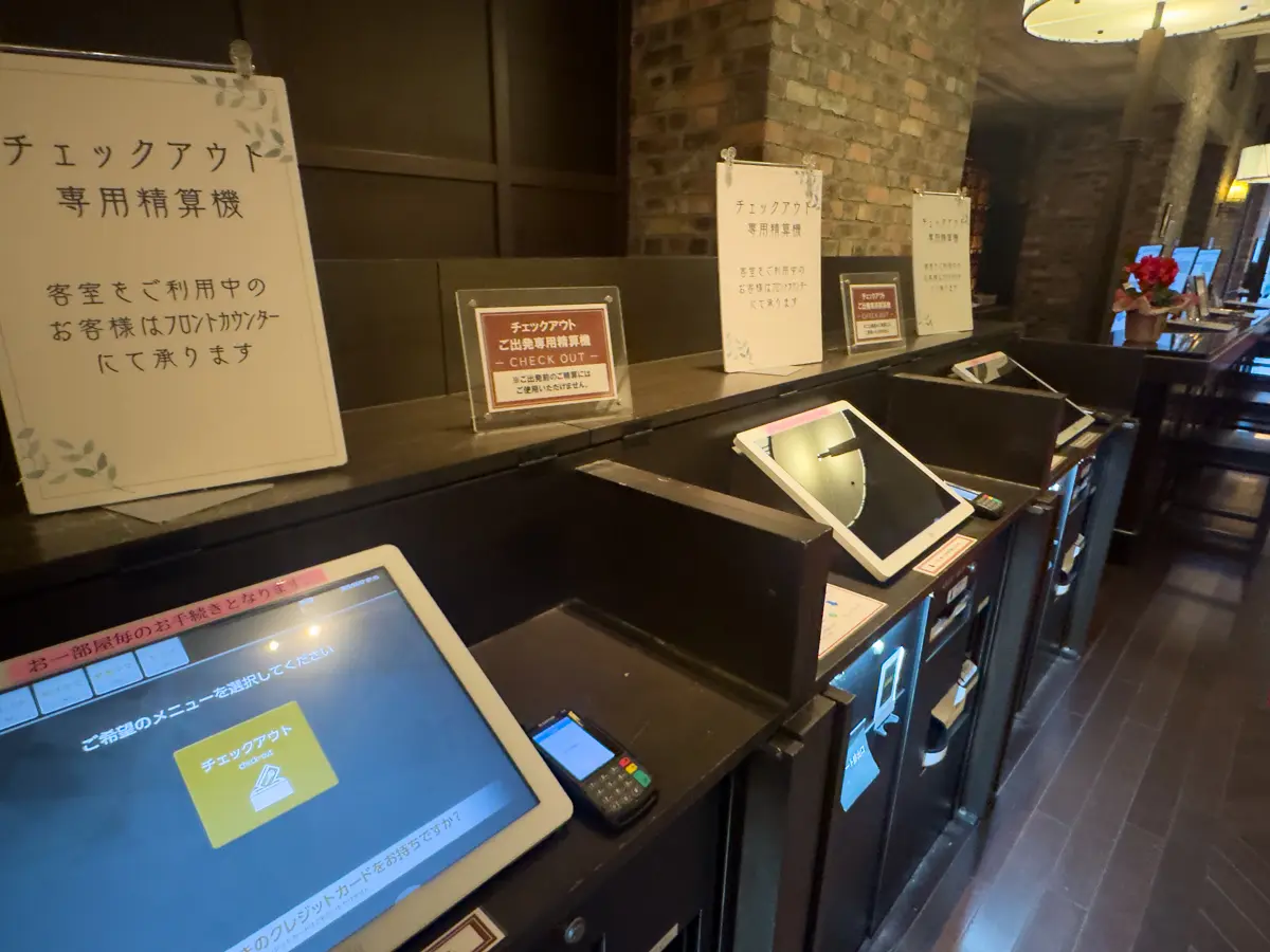 チェックインはフロントで行い、宿泊者名簿はこれまたハイテク時代を象徴するように大型タブレット端末を使って記帳する。