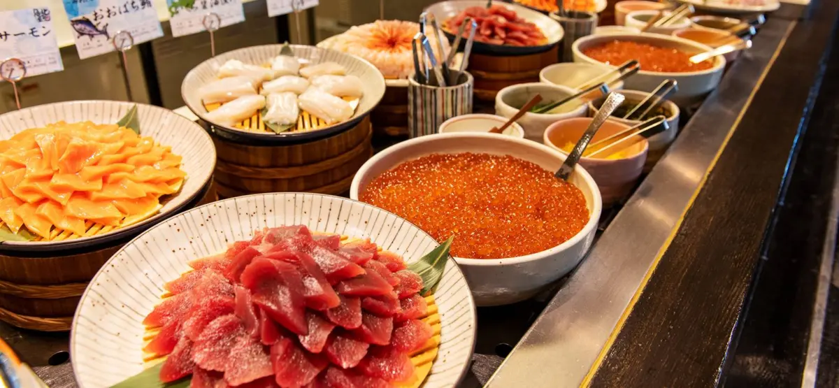 朝食はバイキング形式となっていて、北海道の函館に関する食材を中心に取り扱っている。そして大注目なのが「盛り放題の海鮮丼」だ。
