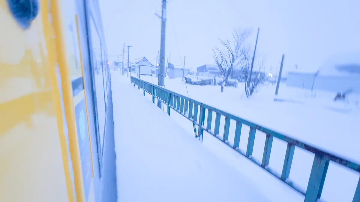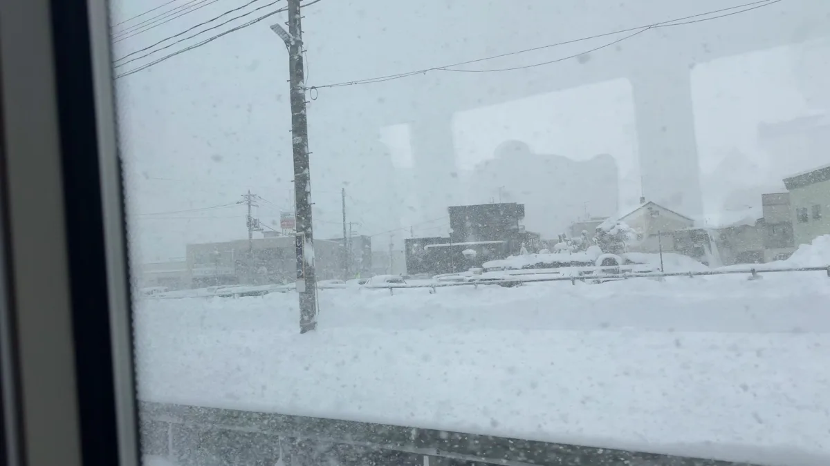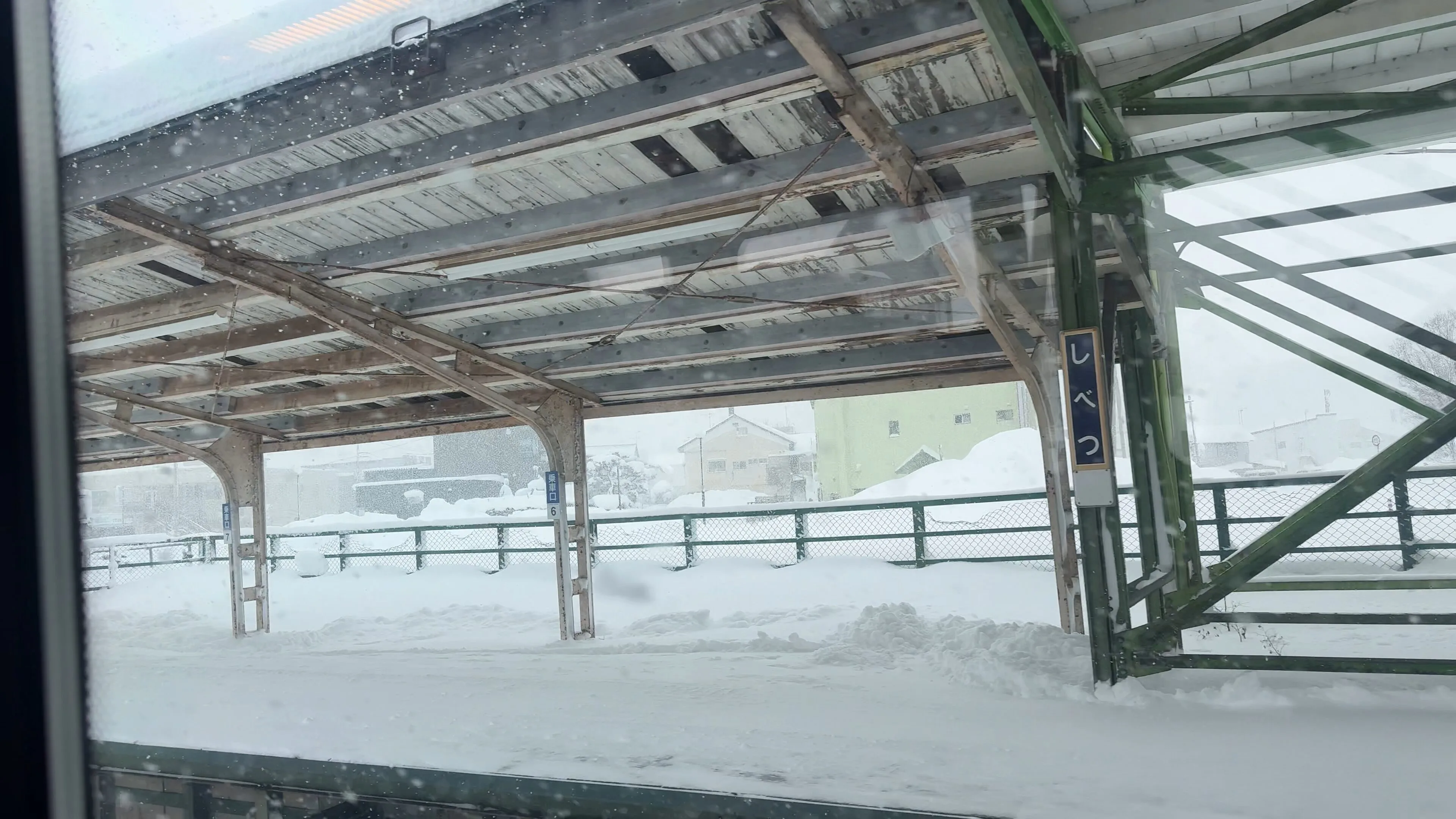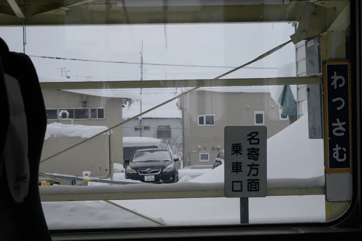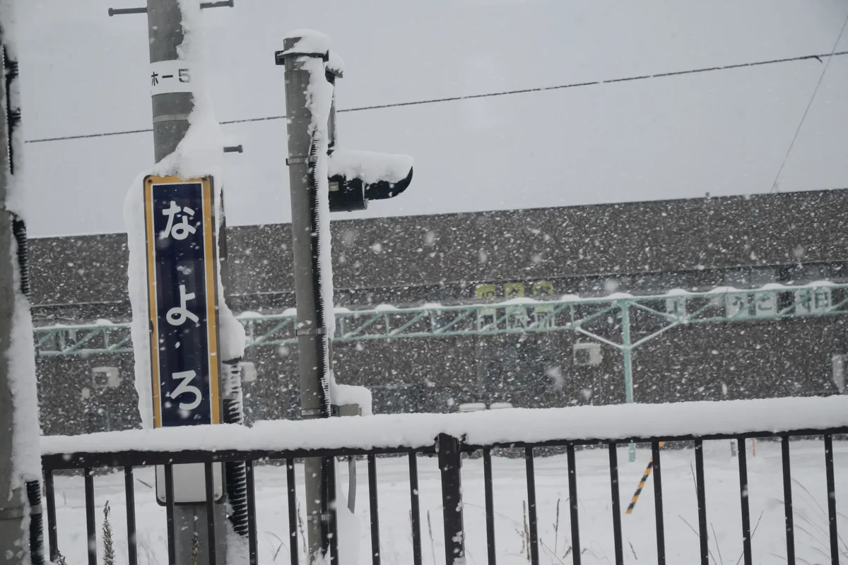 遠くの方に見える駅前の通りはホワイトアウト寸前に見える。ただ、そこを一人の人が歩いているのが見えた。こういう環境に適応しないと生きていけないのね・・・と思いつつ、特急は発車する。