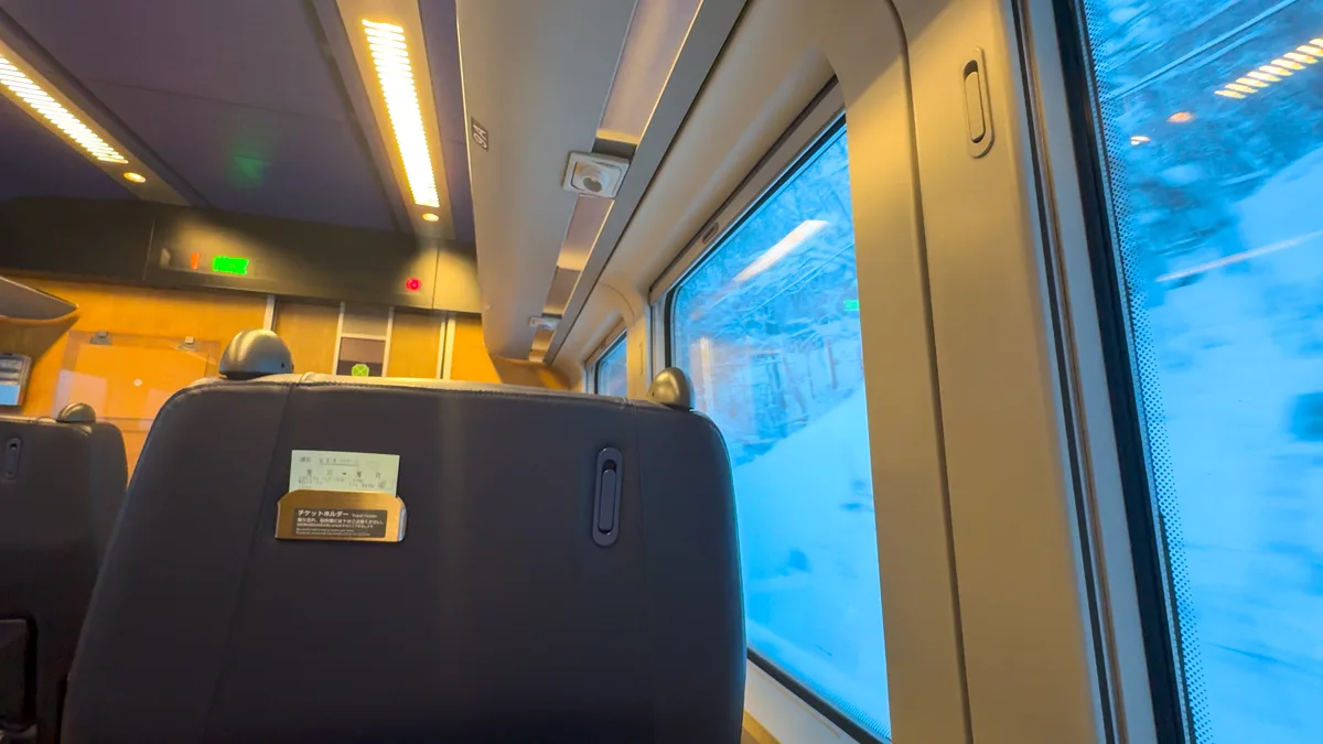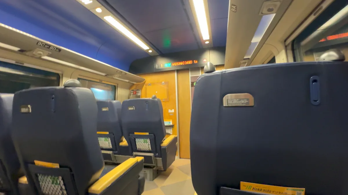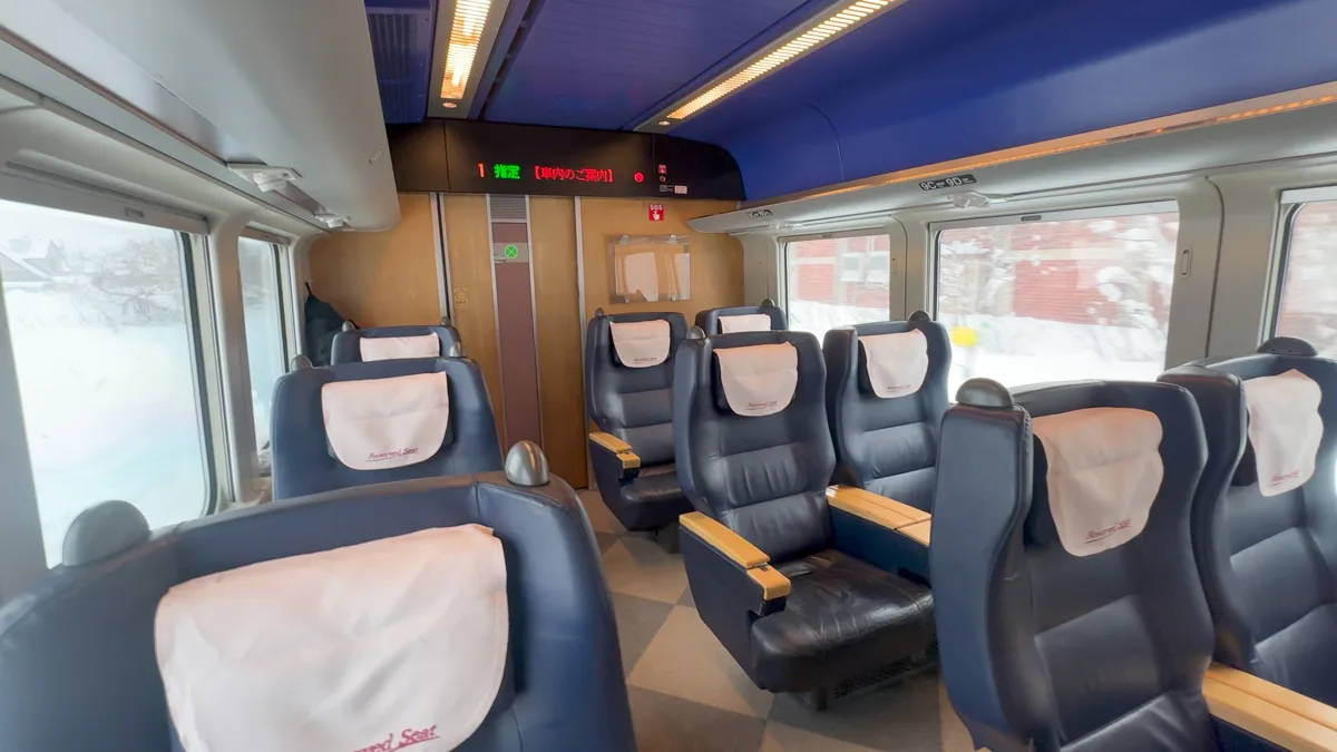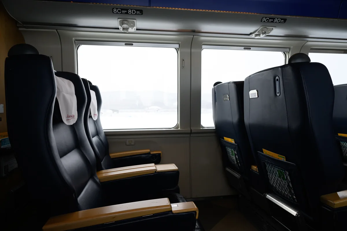 旭川までの車両と異なるのは革張りであることだ。高級感があってとても「グリーン車乗ってますわ!」という感じがする。語彙力が無くて申し訳ないが、そんな気分である。