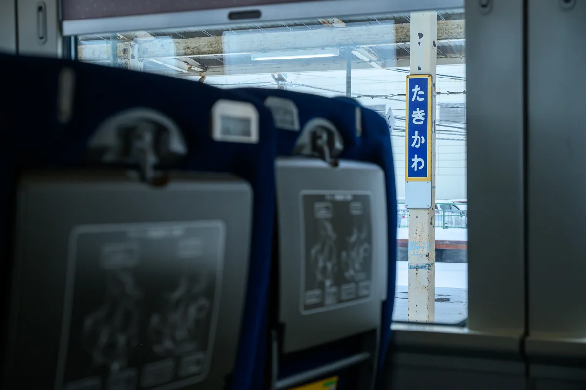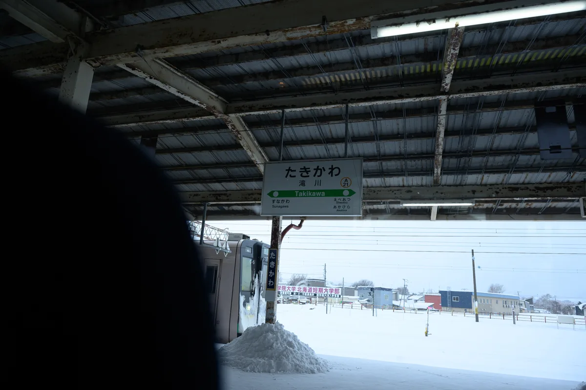 滝川とやってきた。写真でもわかる通り、雪がホームにまで迫ってきているじゃないか。