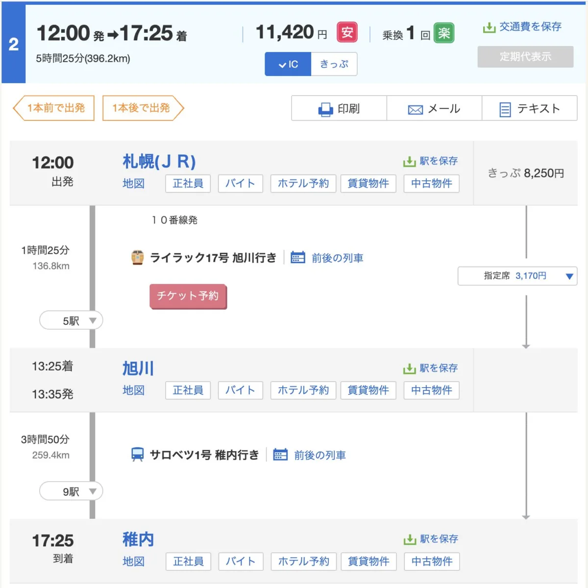 ただ、今回の札幌→旭川→稚内の移動については「旭川で出場しない条件で」全ての行程を一区間とする。というJRの営業規則が存在する。