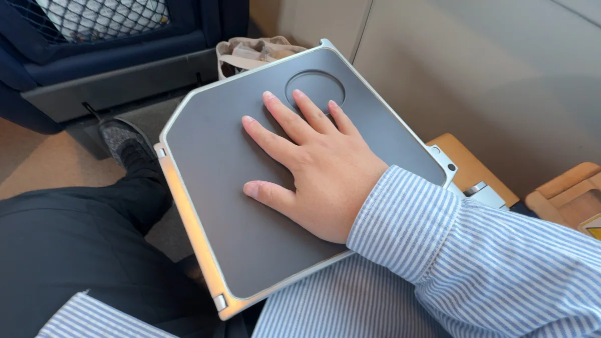 この座席横には隠しテーブルならぬ収納テーブルがある。ちなみに画像では1枚しか出していないが、大きく開く事ができるので、活用してほしい。ちなみに、それに気付いたのは稚内到着前のことである。