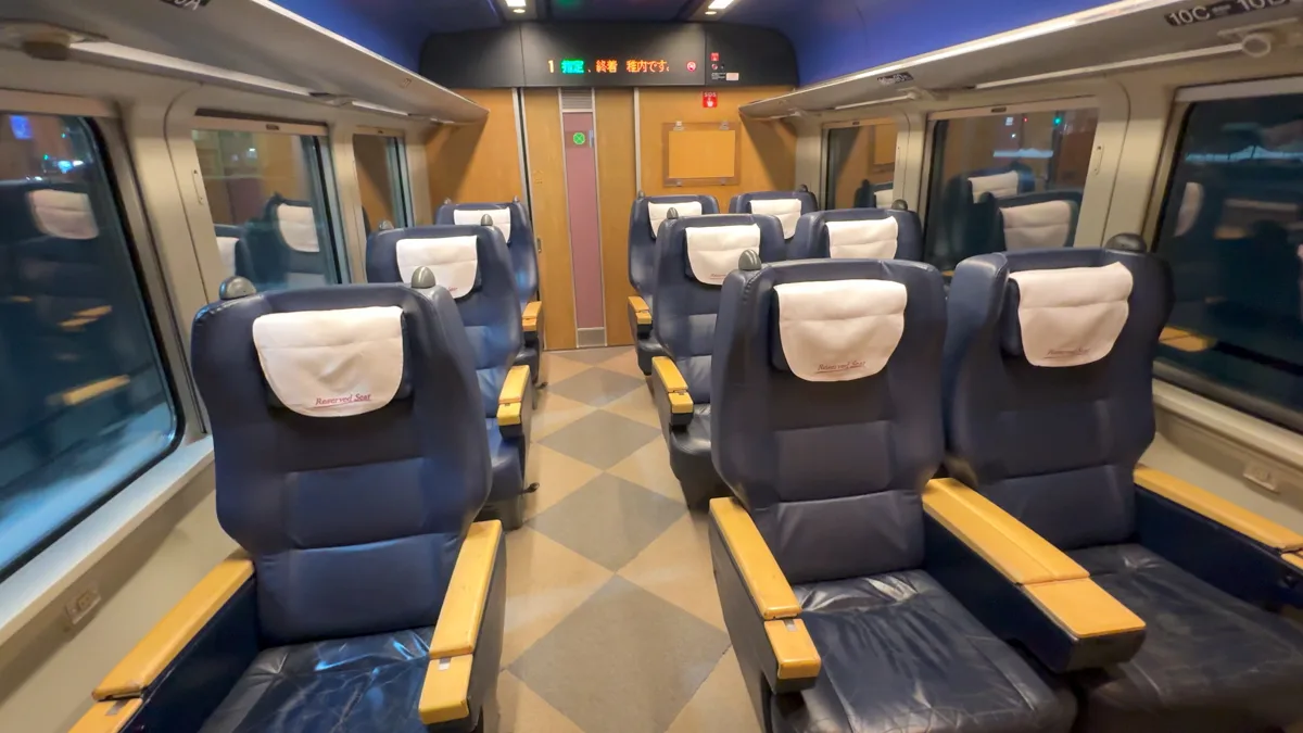 飛び乗ったグリーン車廻りをチェックしよう。特急ライラック、使用されている車両は789系である。