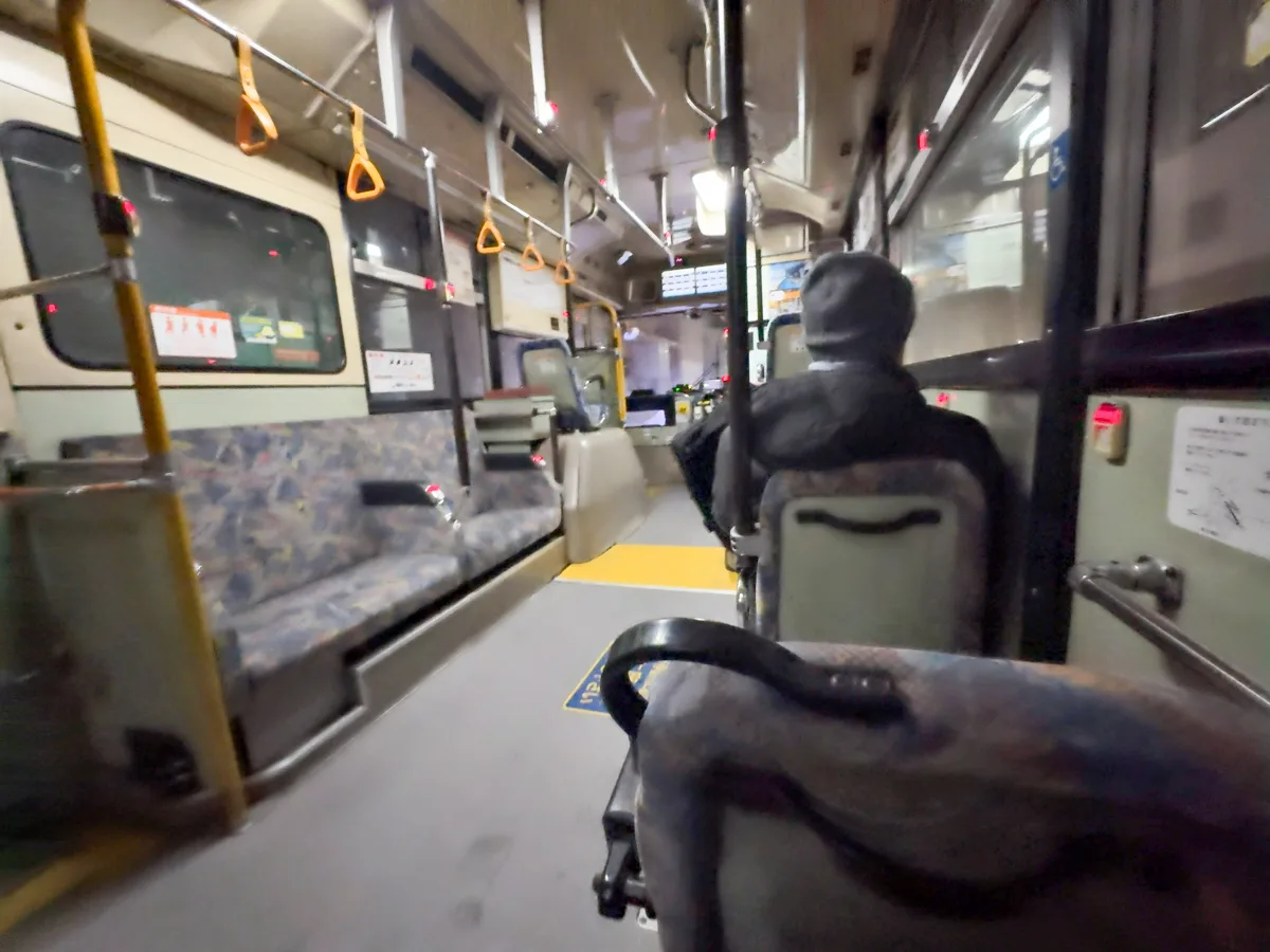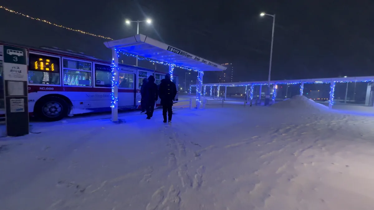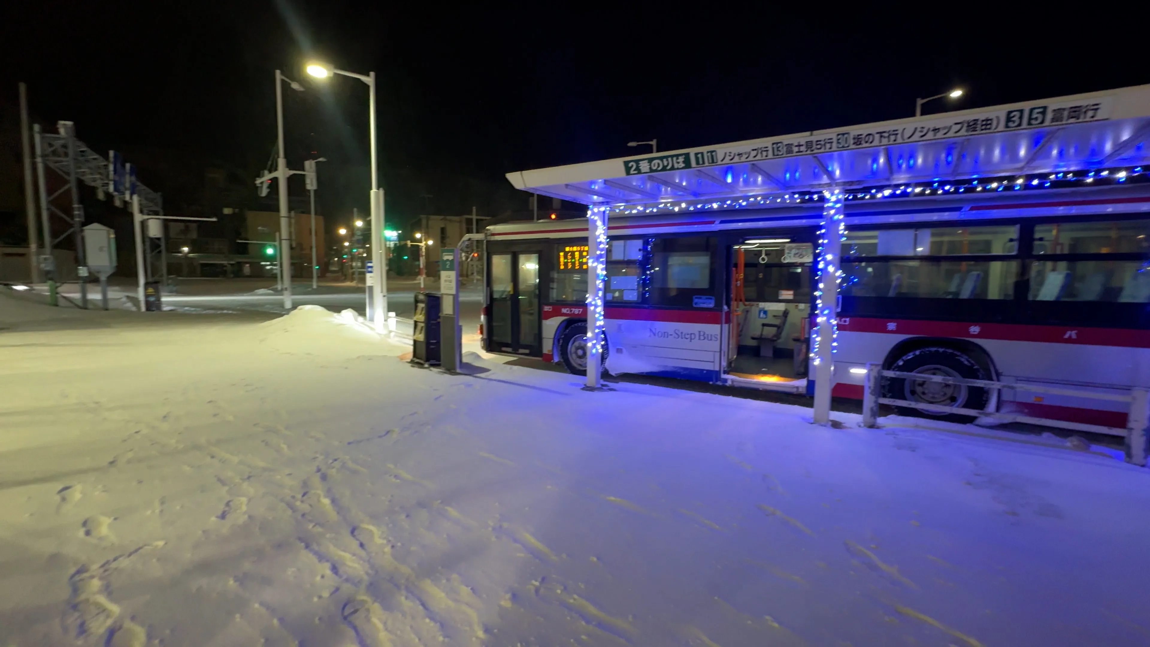 バスに細かい雪がパチパチと当たっていく中、自分と同じタイミングで乗車した人たちは2つや3つ先の停留所で降りていく。