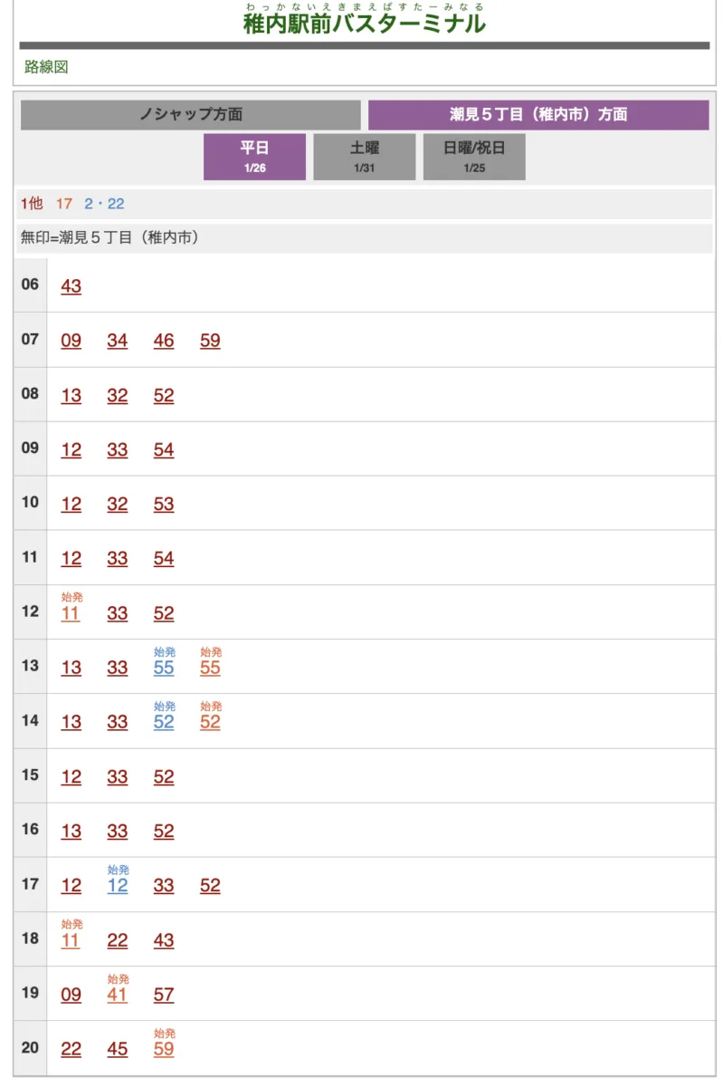 稚内駅の本数を見ると、必然と稚内駅のバスが発展していったのがわかるような気がする。