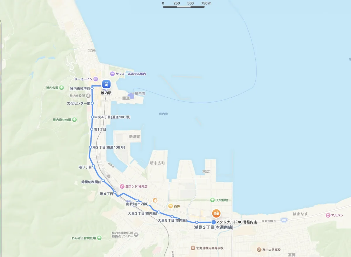 バスは潮見3丁目へ。ここが今回の目的地である「日本最北端のマクドナルド」に近いバス停だ。