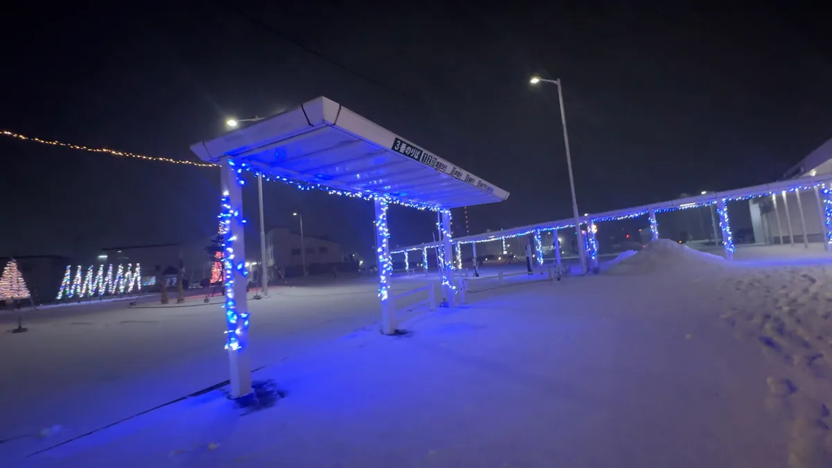 帰りのバス停である「潮見3丁目」へ。今度は稚内駅方面へ向かうバスに乗り込むのだが、周辺は完全に雪が積もっていて、郵便局横に設置されているベンチは・・・使い物にはならないようだ。
