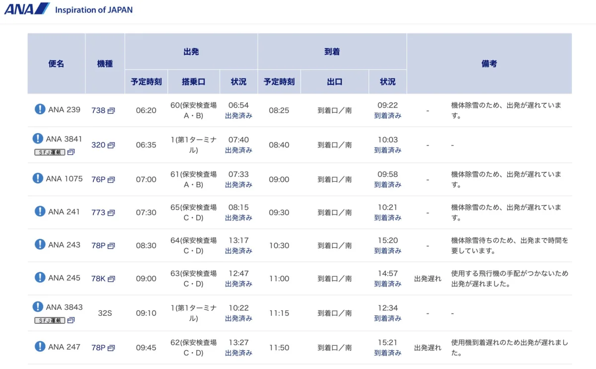 12時30分発だというのに17時発、19時に福岡に着くという便があったりと散々な状態となっていた。