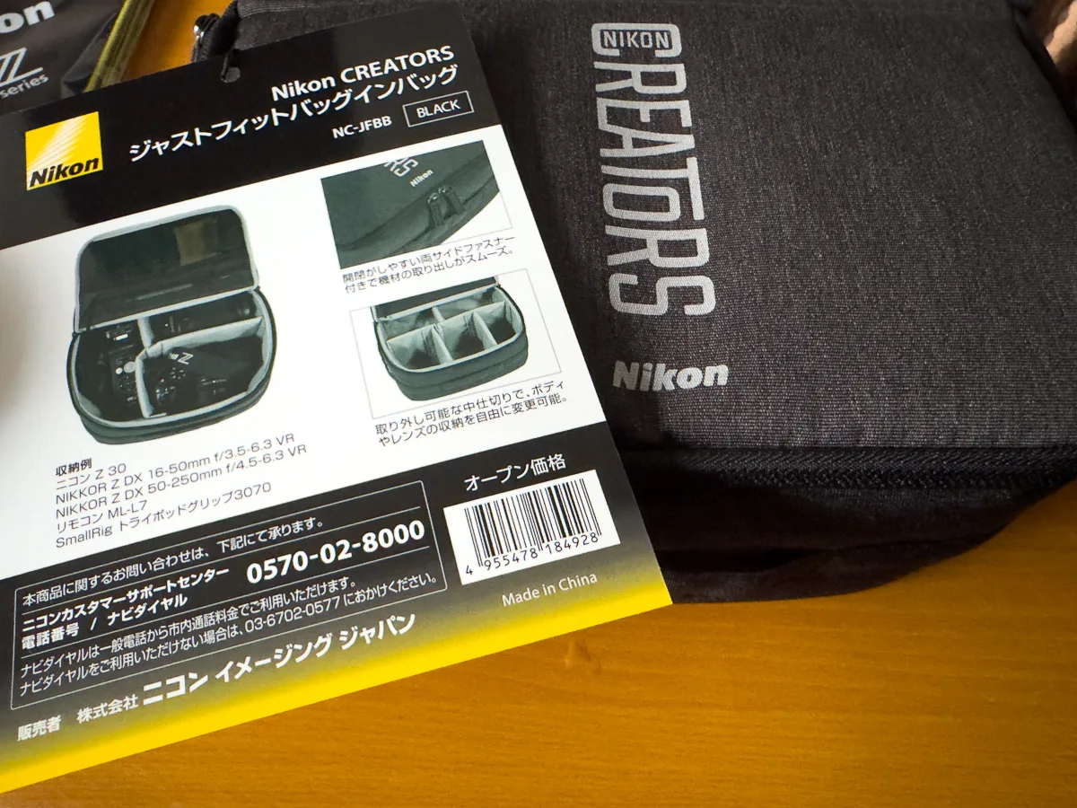 バッグインバッグを購入してみることに。ニコンでは周辺機器やカメラバッグの取り扱いも豊富で、Zマウントシリーズの製品がピッタリ!というものらしい。